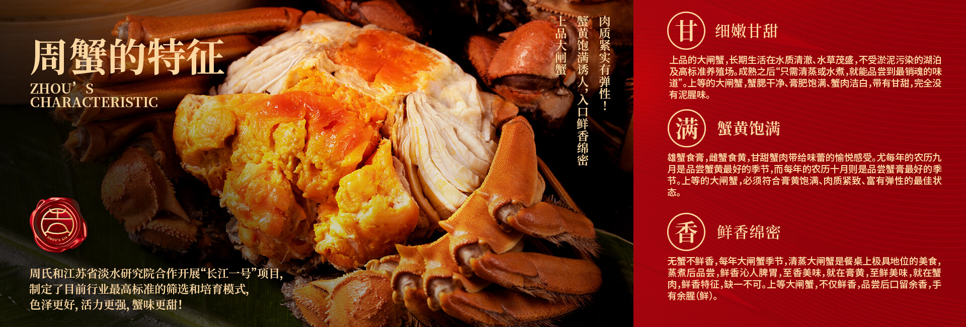 周氏水產精品大閘蟹,14年匠心沉淀,全國87家直營門店,100只大閘蟹只精選最優50只。不虛標規格,不玩???